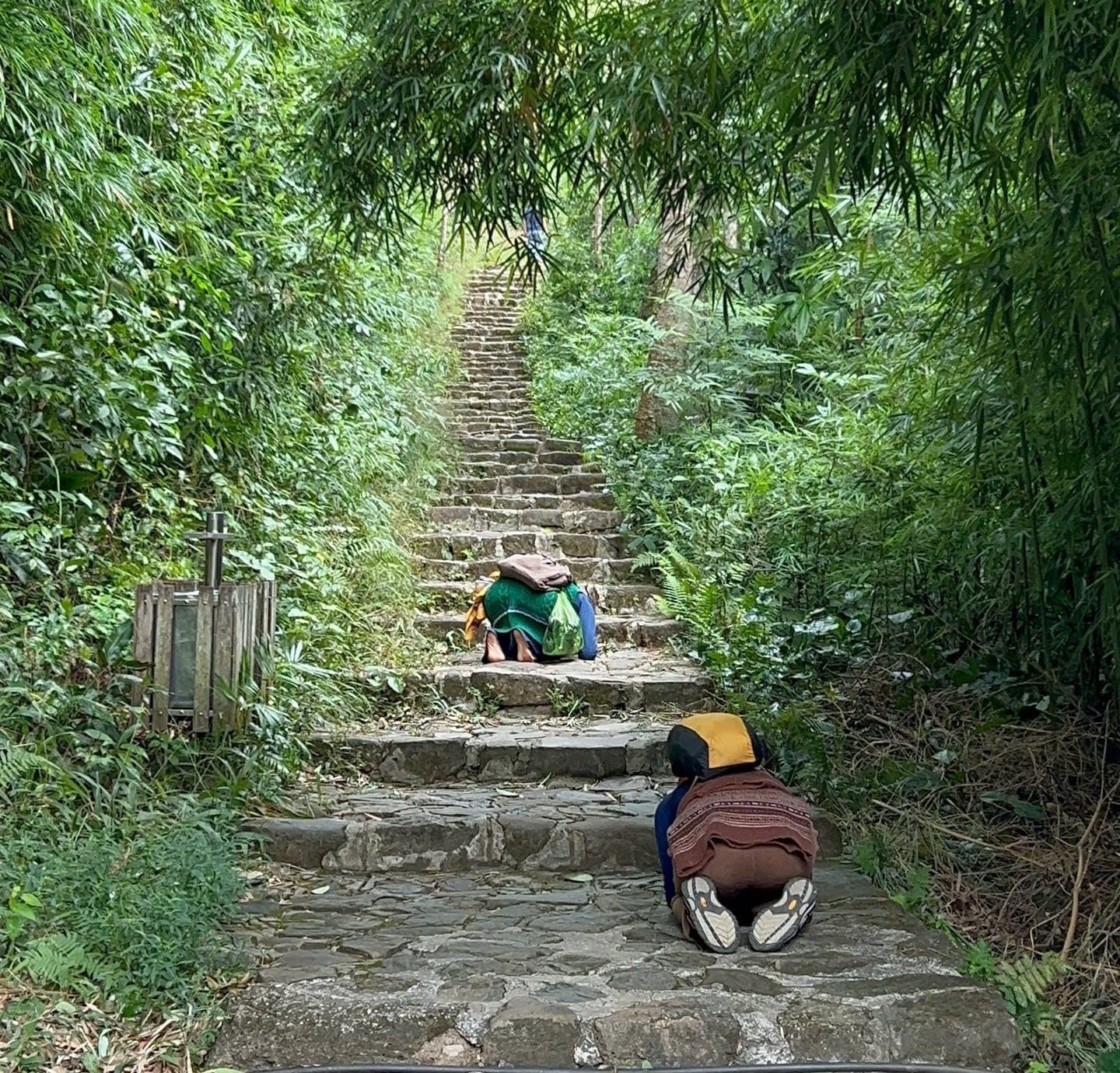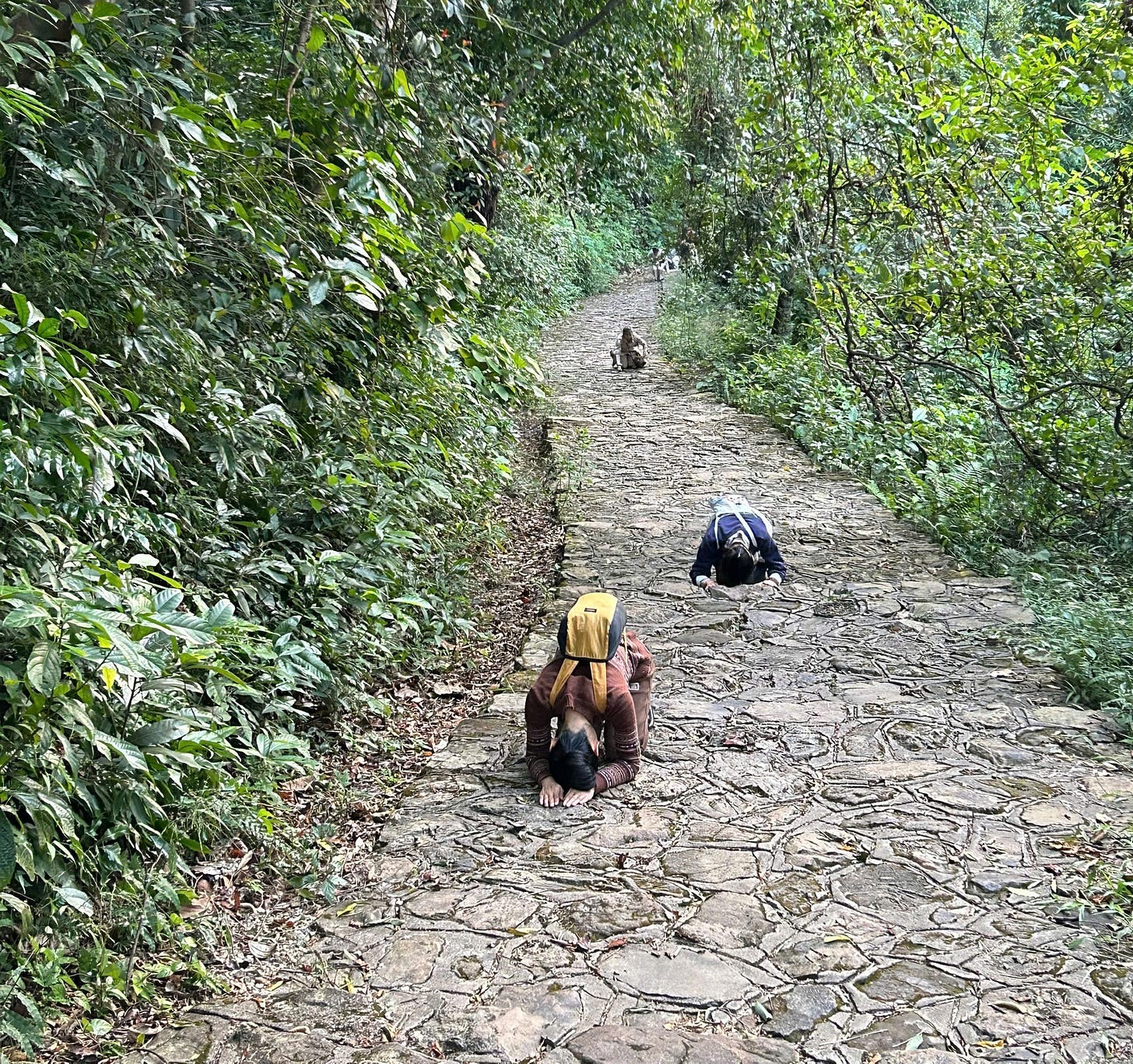 Có lạy xuống, có bước đi từng bậc, mình mới biết mình thế nào. Những sự tưởng tượng trước đó không còn. Thời tiết quang đãng, đường sạch không bụi dính chân, các loài sống ở dưới đất cũng dường như ít xuất hiện cho chúng mình đi.