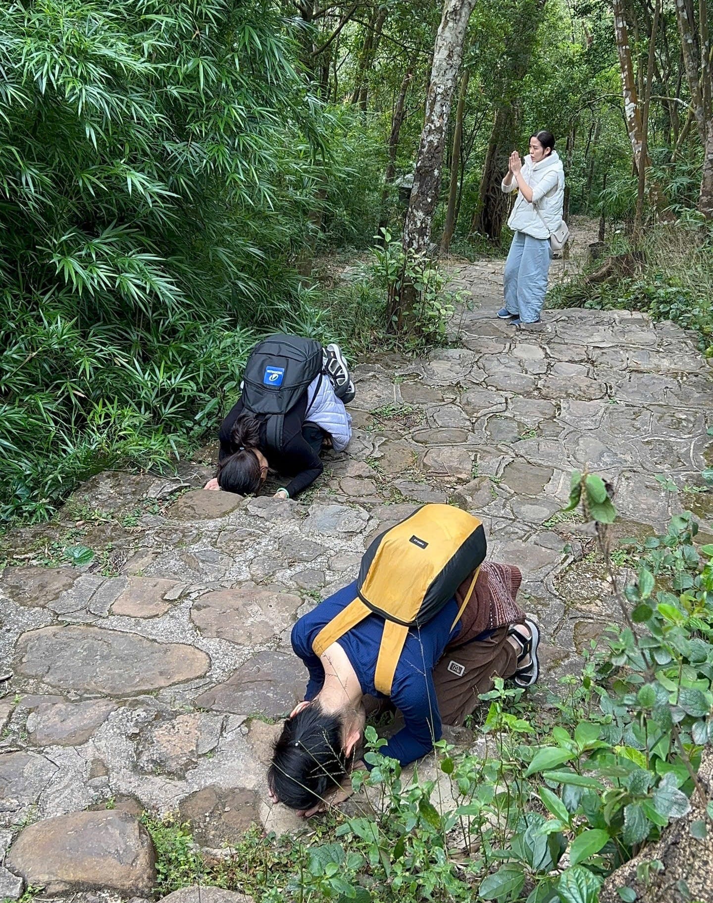Lần này, chúng mình thực hành tam bộ nhất bái, mình đã đăng kí nhưng hơi run vì nghĩ đến đau chân, đầu gối hay không đủ sức khỏe. Sự chuẩn bị bên ngoài chỉ giúp đỡ một phần nào đấy. Còn phần còn lại chính là những bước lạy từ chân núi lên chùa Vân Tiêu.