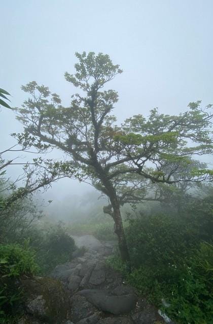 Nhưng khi con đặt chân đến từng bậc đá thì lại không hề nhìn thấy hoa ấy, những bông hoa ấy đang bị lấp đi bởi những ngon cỏ xanh bên cạnh. Rồi có những đoạn con phải đi thật chậm, bàn chân đặt xuống phải thật chắc chắn không sẽ ngã vì trời vừa dứt bão, các thềm đá còn đang rất trơn. Hoặc những đoạn con phải bước đi thật nhanh và dứt khoát không được chậm trễ vì nếu đi không dứt khoát ra khỏi đoạn đó con sẽ bị chần trừ và tụt lại phía sau và dễ bỏ cuộc. Qua đó con nhận ra rằng khi đã bước chân vào con đường tu tập thật đẹp ấy không hề dễ dàng như ta nghĩ, phải nỗ lực, có những lúc chậm rãi từng bước đi và có những lúc ta phải bứt phá nếu không ta sẽ bị bản ngã kéo đi một cách mạnh mẽ.